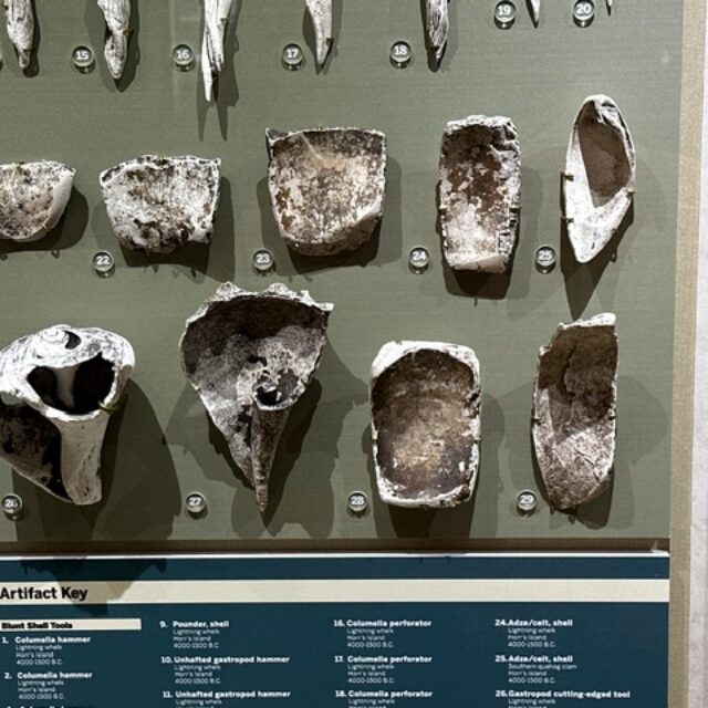 For the second part of the tour, we will venture out to the islands where the ancient Calusa Indians, and early settlers actually made their home. We will explore the man-made Shell Islands left behind by the Paleo people of Florida. Some of these mounds have been radiocarbon dated to 2800 BC! We also walk the beaches of the barrier islands, identifying traces of their ancient civilization.